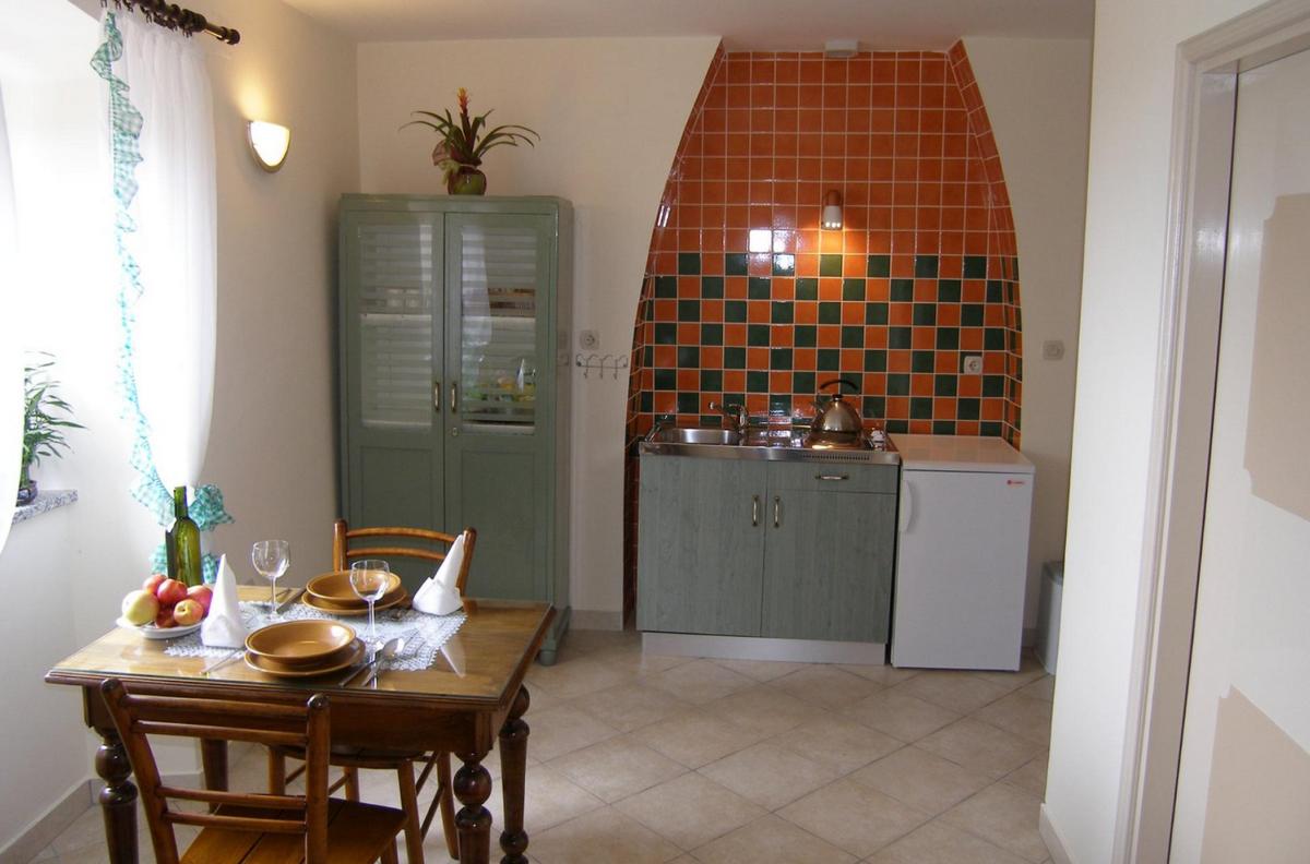 Dva luksuzna apartmana za dvije osobe, jedan apartman za tri osobe, jedna dvokrevetna soba (s mogućnošću dodatnog kreveta) te jedan apartman sa dvije dvokrevetne i jednom jednokrevetnom sobom (s mogućnošću dva dodatna kreveta) u središtu Kastva, ispod šetališta Fortica. Smještajne jedinice raspolažu klima uređajem i televizorom sa satelitskim prijemom.